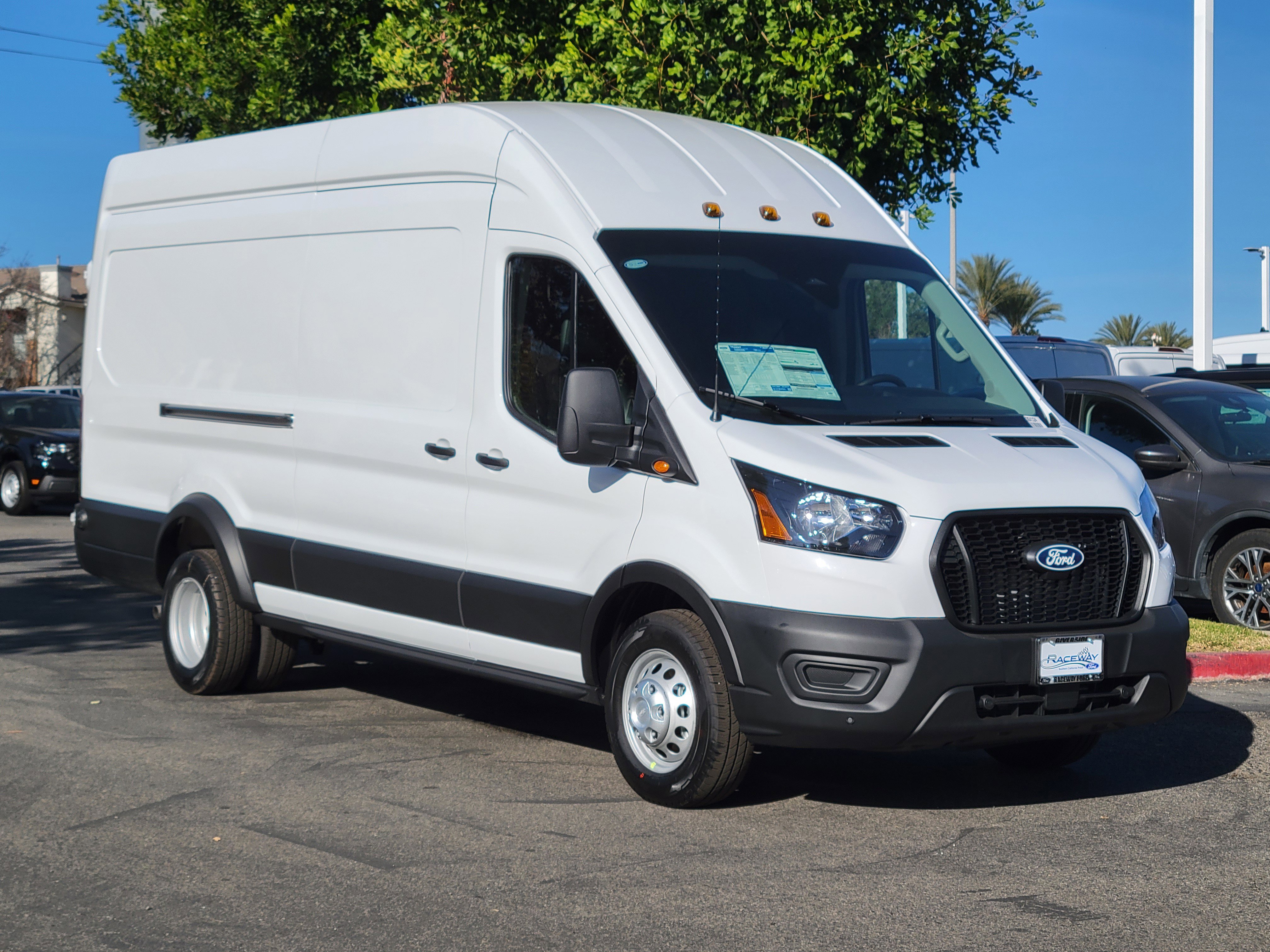 Advertised Sale price is approximate as each vehicle price varies by Model and options. We have made every effort to ensure accuracy with data provided as of today. See dealer for complete details and actual discount amount. This 2026 Ford Transit-350 comes equipped with, 4 Speakers, 4-Wheel Disc Brakes, 6 Cargo Tie-Down Hooks, ABS brakes, Air Conditioning, AM/FM radio, AM/FM Stereo, Apple CarPlay/Android Auto, Auto High-beam Headlights, Brake assist, D-Pillar Assist Handles, Dark Palazzo Gray Vinyl Bucket Seats, Delay-off headlights, Driver door bin, Driver’s Seat Mounted Armrest, Dual front impact airbags, Dual front side impact airbags, Dual rear wheels, Electronic Stability Control, Emergency communication system: 911 Assist, Ford Connectivity Package (1-Year Included), Frame Mounted Hitch Receiver, Front and Rear Vinyl Floor Covering, Front anti-roll bar, Front Bucket Seats, Front License Plate Bracket, Front reading lights, Front wheel independent suspension, Fully automatic headlights, Heavy-Duty Trailer Tow Package, Illuminated entry, Load Area Protection Package, Low tire pressure warning, Midship Extended Range Fuel Tank (31 Gallons), Navigation system: Connected Navigation, Occupant sensing airbag, Overhead airbag, Panic alarm, Passenger cancellable airbag, Passenger door bin, Power door mirrors, Power steering, Power windows, Rain sensing wipers, Rear Parking Camera, Remote keyless entry, Speed control, Steering wheel mounted audio controls, SYNC® 4, Tachometer, Telescoping steering wheel, Tilt steering wheel, Tow/Haul Mode with Trailering Wiring Provisions, Traction control, Variably intermittent wipers, Vinyl Front Bucket Seats, Wheels: 16″ Heavy Duty Silver Steel.At Raceway Ford we believe in transparency. We want you to know up front the pricing to help you make an informed decision. While other dealers have removed online pricing, we want to reassure our customers that we are here for you with upfront transparent processes and pricing.Oxford White 2026 Ford Transit-350 AWD 10-Speed Automatic with Overdrive EcoBoost® 3.5L V6 GTDi DOHC 24V Twin Turbocharged Price includes: $2500 – Retail Customer Cash. Exp. 03/31/2026